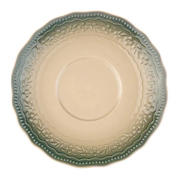 Блюдце «Эйфория» фарфор D=15/6,H=2см бежев.,зелен.