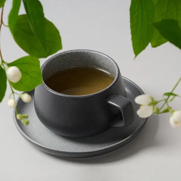 Чашка кофейная Seiko бренда Kunstwerk привлекает уверенным силуэтом. Ее дизайн строится на контрасте: мощная округлая форма с широкими стенками и утонченная матовая поверхность в дымчато-сером цвете с бархатистой текстурой. Такую чашу приятно держать в руке и подавать гостям.