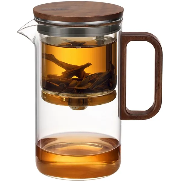 Чайник заварочный «Гунфу» с фильтром стекло,дерево 0,5л ,H=14,8см прозр.,коричнев.