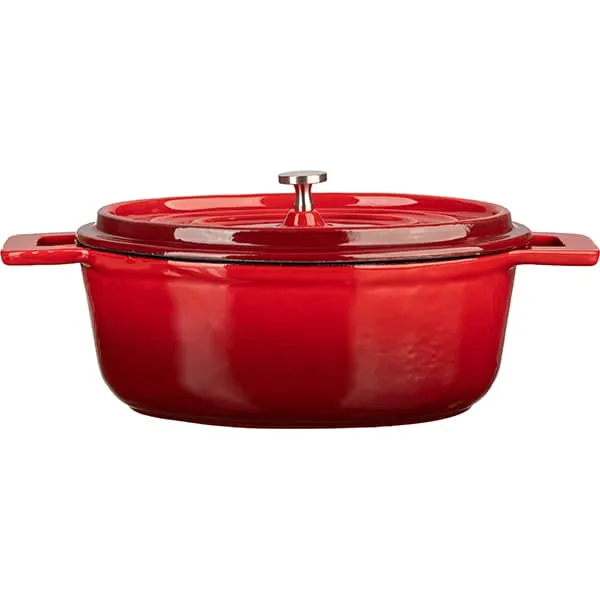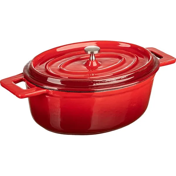 Кастрюля для запекания с крышкой чугун 0,8л ,H=7,L=18,B=14см красный