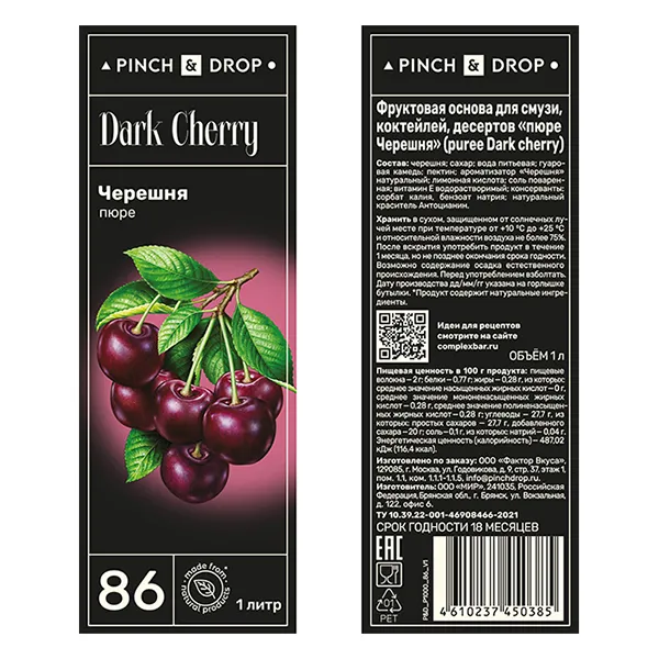 Пюре «Черешня» фруктовое Pinch&Drop пластик 1л D=7,H=26см
