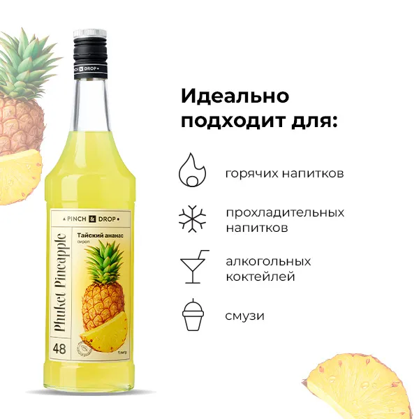 Сироп «Тайский Ананас» раскрывается неожиданными мягкими и сладкими нотами, что делает его фаворитом среди тропических вкусов.