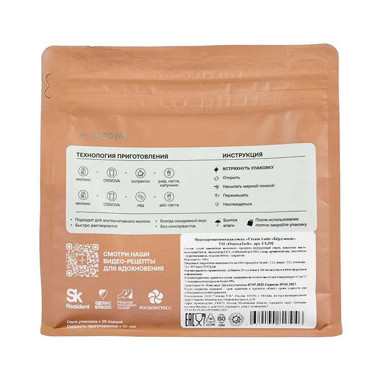 Смесь сухая для приготовления напитков «Птичье молоко» для раф кофе 500 г картон,пластик ,H=18,L=18,