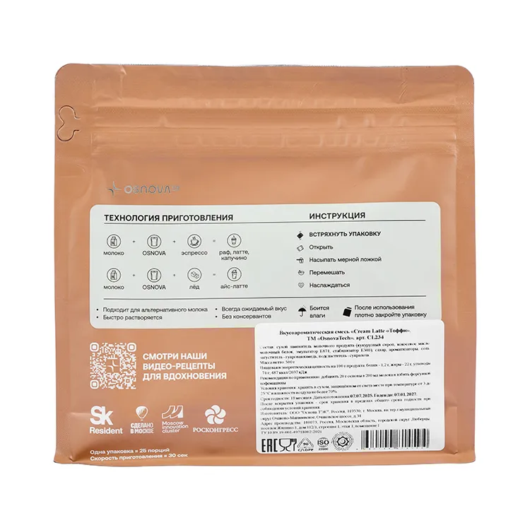 Смесь сухая для приготовления напитков «Тоффи» для раф кофе 500 г картон,пластик ,H=18,L=18,B=6см