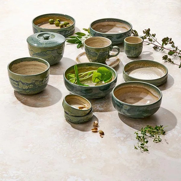 Тарелка «Аврора Революшн Джейд» с бортом фарфор D=202,5,H=54мм бежев.,зелен.